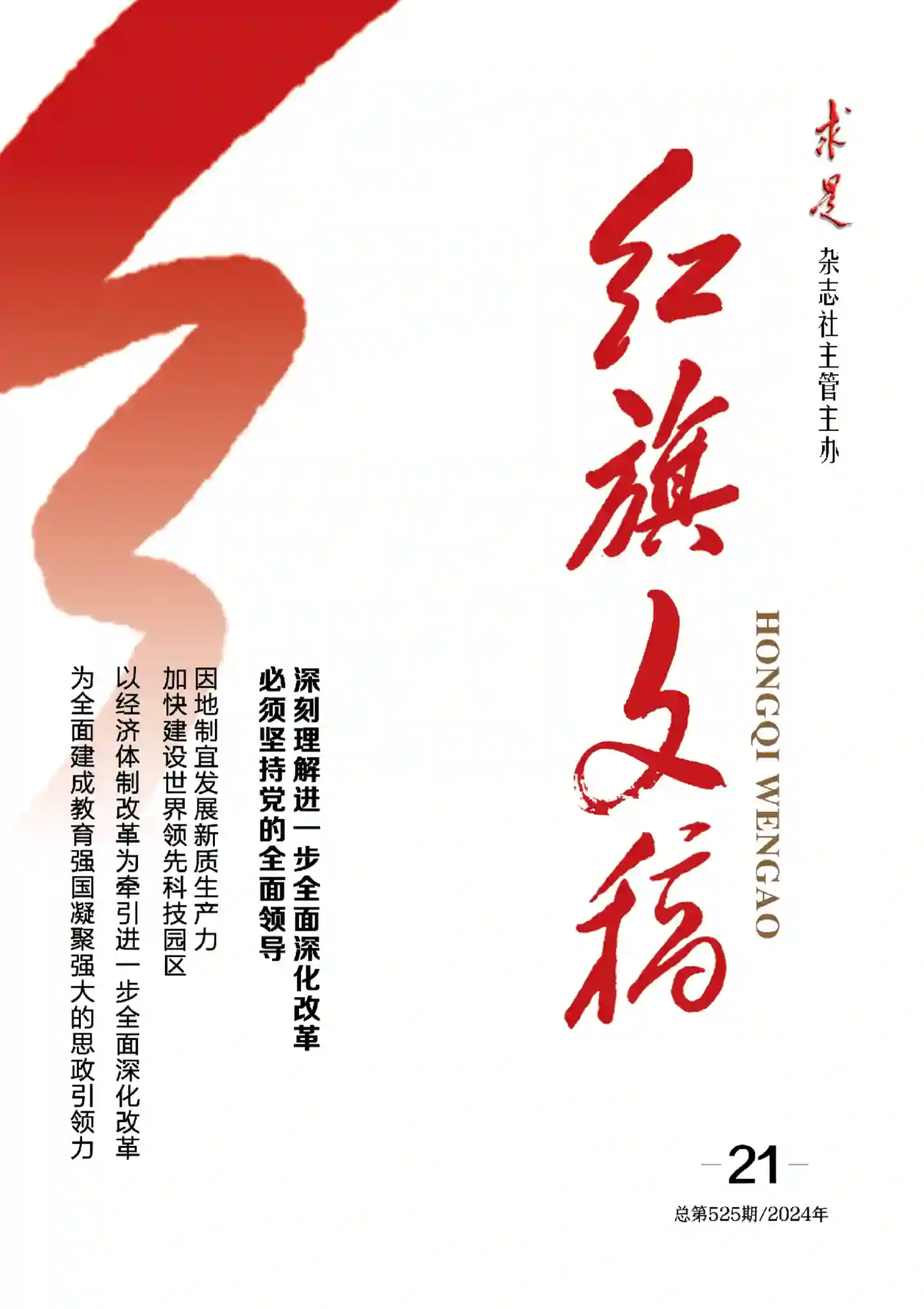 《红旗文稿》是求是杂志社主管主办、面向国内外发行的综合性政治理论半月刊,是中共中央机关刊《求是》杂志宣传事业的重要组成部分,是党在宣传思想理论战线的重要阵地。